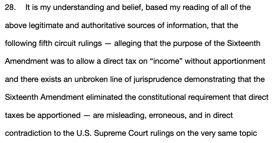 i wanted to make sure to let the judge and the irs’ attorneys know, and the fifth circuit in case an appeal would be necessary, that the previous fifth circuit rulings were in error and should not be the “law” applied to our case.